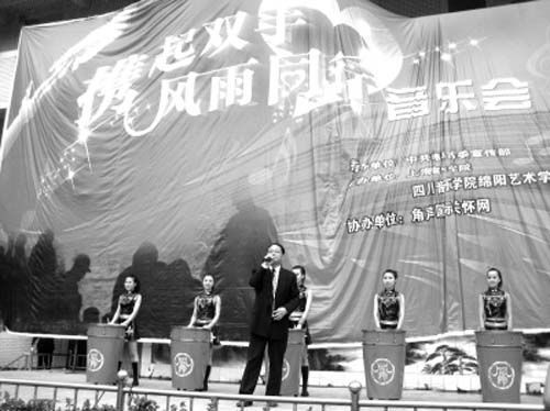 Mr. Dong had doubts about whether a song and dance concert could be scheduled for the special date of "May 12th." With the strong support of the "Corner Voice International Care Network," he had already coordinated, planned, and arranged various aspects, including funding, equipment, accommodation and travel for the performing troupe, and cooperation with staff in Sichuan. At this difficult time, the Shanghai Conservatory of Music and the Mianyang Art College of the Sichuan Conservatory of Music resolutely took on the responsibility of hosting and organizing the concert, thus ensuring that the performance time and location in Sichuan could be confirmed. Mr. Dong Rongcan said that it is particularly worth mentioning that Wang Longxing, the main leader of the Shanghai Municipal Food and Drug Administration, specially approved the [document/document/etc.].Join hands and weather the storm together.Xu Xiaoxuan, the original singer of the album and a military singer who had just been discharged from the army and joined the unit, came to the disaster area to participate in a charity performance; the Beijing "Phoenix Orchestra", which had participated in the opening ceremony of the Beijing Olympic Games, also flew in to perform the water drum "The Rise of Life", which opened the song and dance concert.
